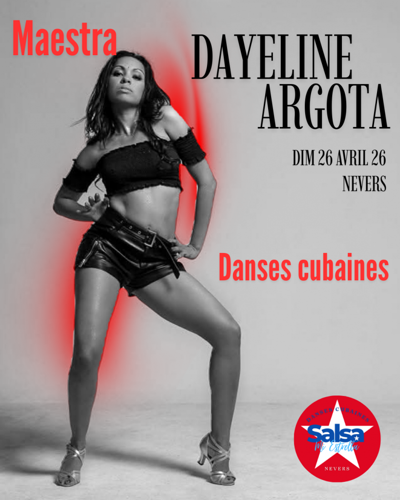 Nous aurons le plaisir d’accueillir Dayeline Argota Alvarez, danseuse, professeure et chorégraphe formée à Santiago de Cuba. Diplômée de la prestigieuse Académie des arts José María Heredia, elle a dansé au sein du célèbre Conjunto Folklórico de Oriente.